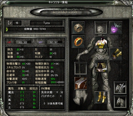 名前忘れたけどエルなんとかって鯖で、Tyiraって名前のムーンエルフ・レンジャーやってます