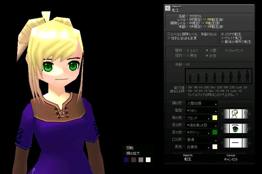 いつものように、転生前と転生後の容姿をのっけてみよう って感じ やっぱり転生回数に対して、それほど良いステじゃないなぁ まぁ~スキルトレとかLv上げぜんぜんやってないんだから、当然っちゃ当然だけど とりあえず全chで な格好でうろうろしてるのがいたら、それはウチですよヽ(´ー`)ノ